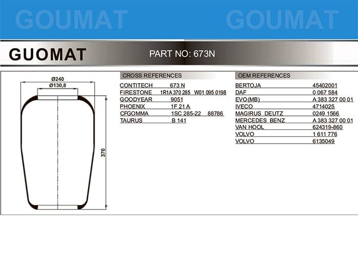 - 673N/北方奔驰客车气囊/北奔空气弹簧/CONTITECH 673N/FIRESTONE STYLE 1R1A-370-285/W01-095-0198/PHOENIX 1F21A/CF GOMMA