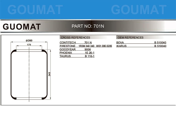 - 715N/五十铃客车气囊/科曼底盘空气弹簧/CONTITECH 715N/FIRESTONE 1R1C-335-310/PHOENIX 1F25/DUNLOP UK PNP304890101/GOOD